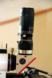 Doublet-Objektiv, Dual Speed Micro Focuser, Baader Clicklock, wird visuell ohne Flattener (dann f/5.3) eingesetzt.